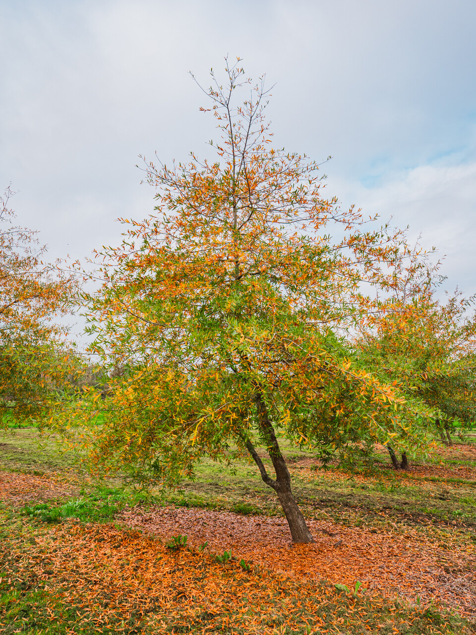 A tree occurring naturally in North America on moist but well-drained soils. In warm climates semi-deciduous to evergreen, in cold climates mostly deciduous. In the wild it attains a height of 30 m but when cultivated only reaches 15 to 20 m. The smooth dark grey bark becomes rough in older specimens and flakes off in small platelets. Young olive-green shoots are covered with downy hair but quickly become bare and brownish-green. The leaves are narrow lanceolate to sometimes linear and closely resemble those of the willow. They are 5 - 15 cm long and 1 - 1.5 cm wide. On the upper side dark green, the underside bluish-green. The smooth leaf edge is slightly undulating. The autumn colour is light yellow in regions where the leaves fall in the winter. The acorns are at the most one-third enclosed in the cupule.