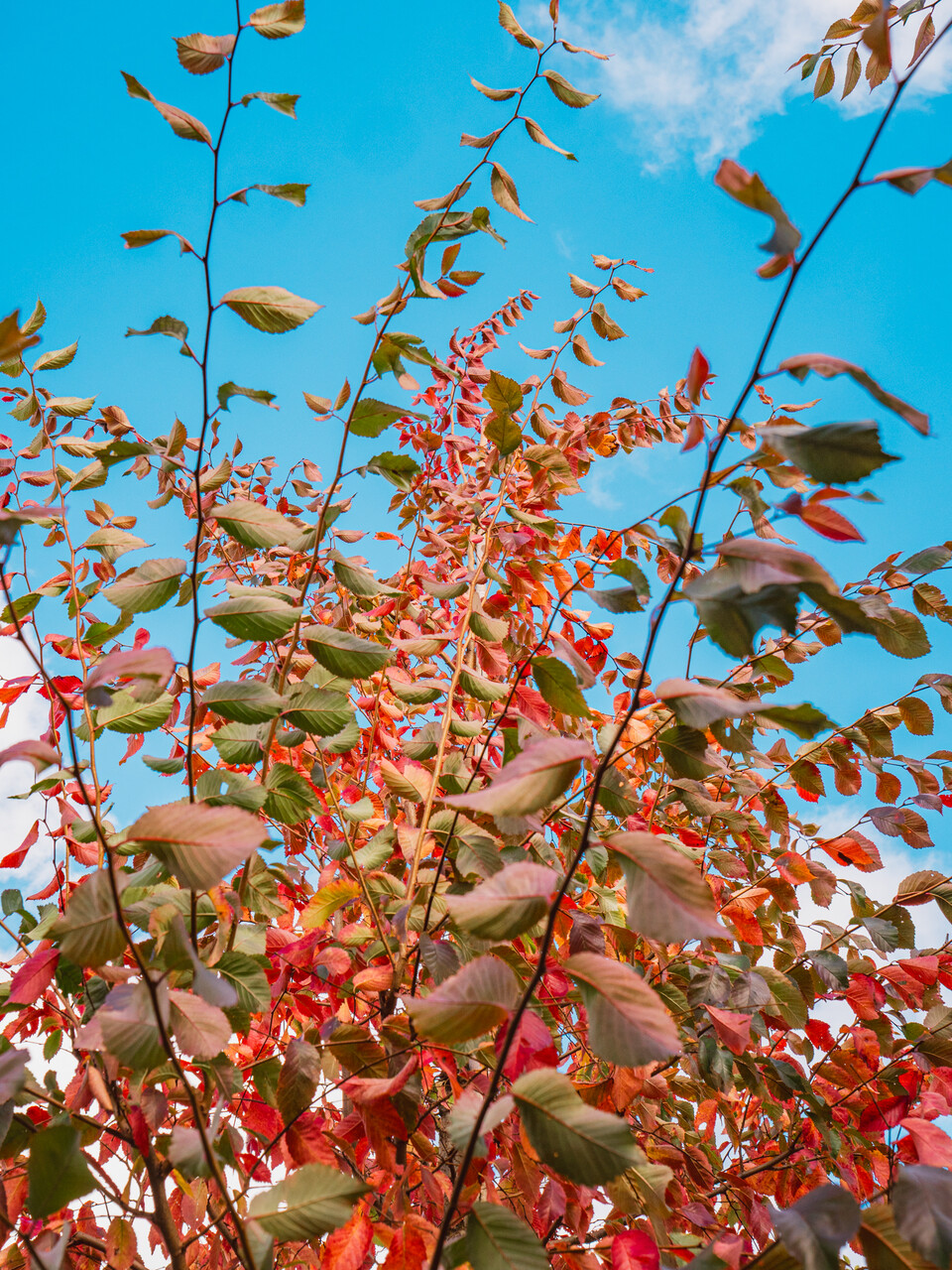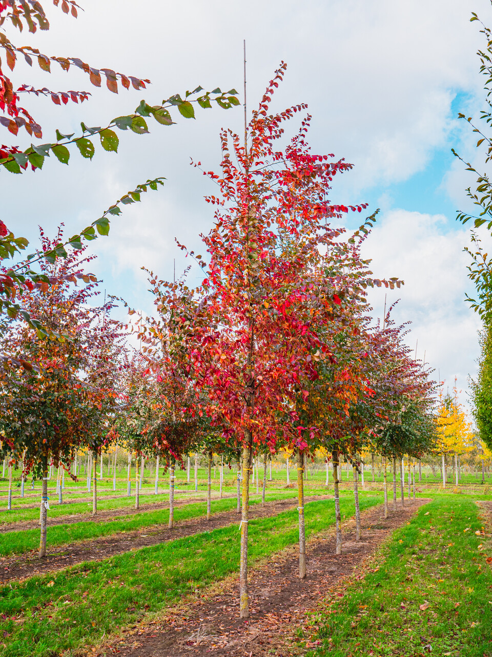 The leaves of Ulmus 'Frontier' turn red in autumn.