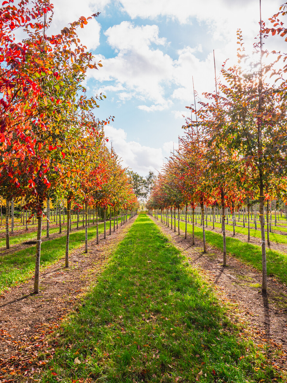 A medium-size tree with an initially ascending, pyramidal crown and a good upright central leader. Mature trees have an oval crown and grow to a height of 6 to 10 m. The grey-green bark is smooth. The relatively small leaf is oval to elongated-ovate and glossy dark green. In autumn it turns an attractive red to dark wine red. Unlike many other Elms, ‘Frontier’ blossoms in September and not in spring. The tree originated as a hybrid between Ulmus minor and Ulmus parvifolia. The latter is an Asian species that is evergreen in milder climates. Ulmus parvifolia naturally has a very strong resistance to Dutch elm disease. To a certain extent, ‘Frontier’ has inherited this resistance. Its oval crown shape makes it suitable as an avenue tree or street tree.