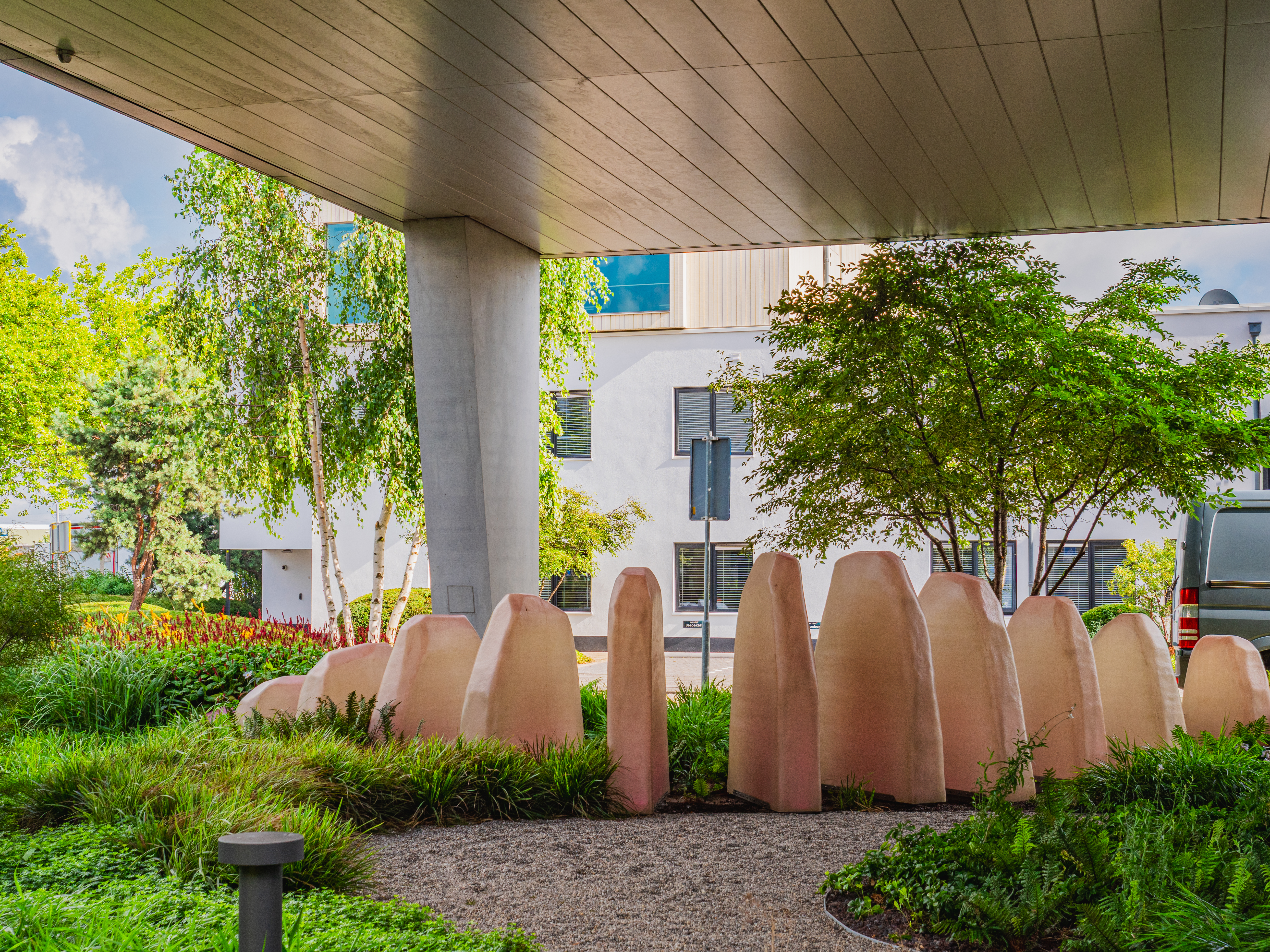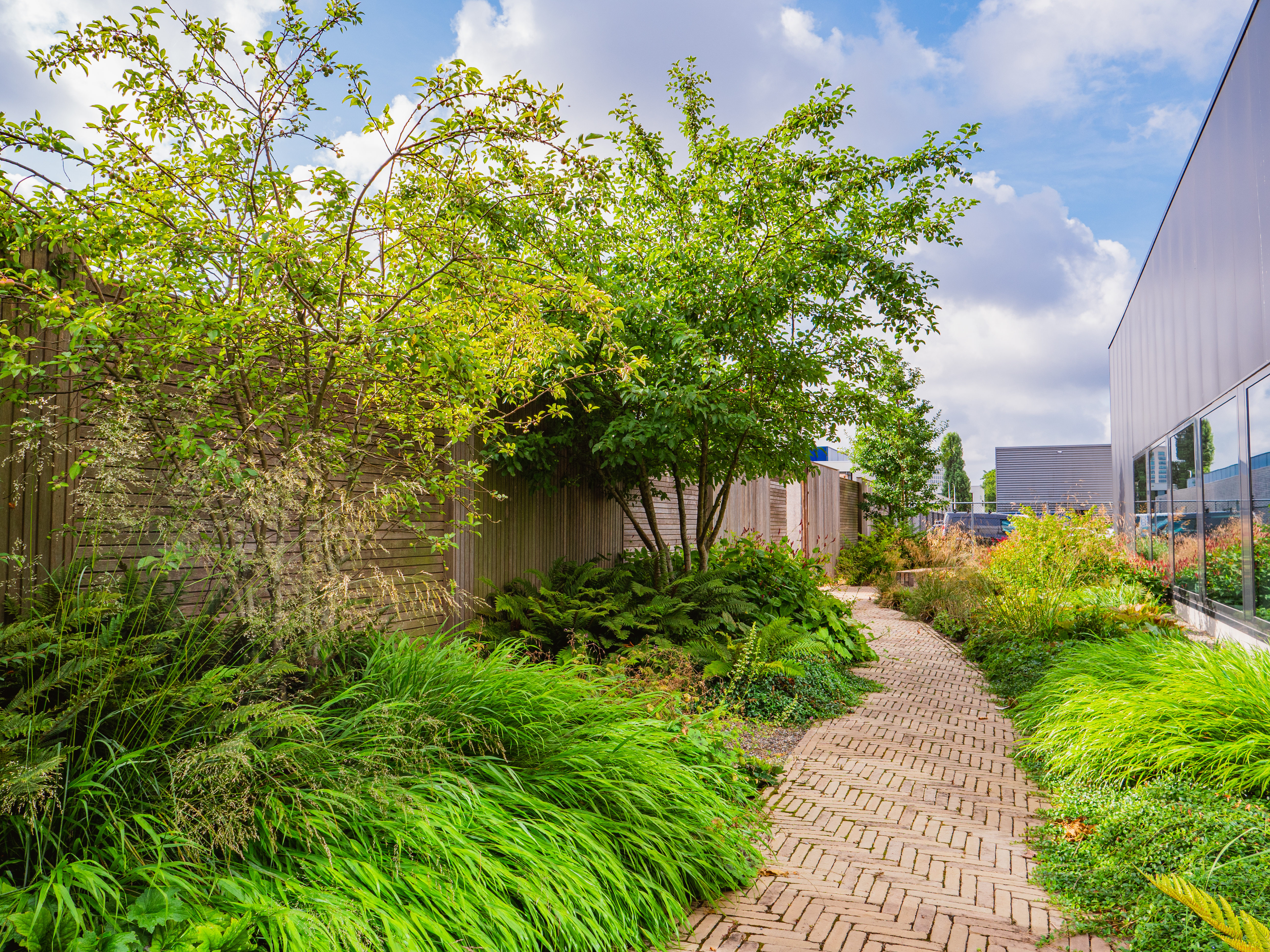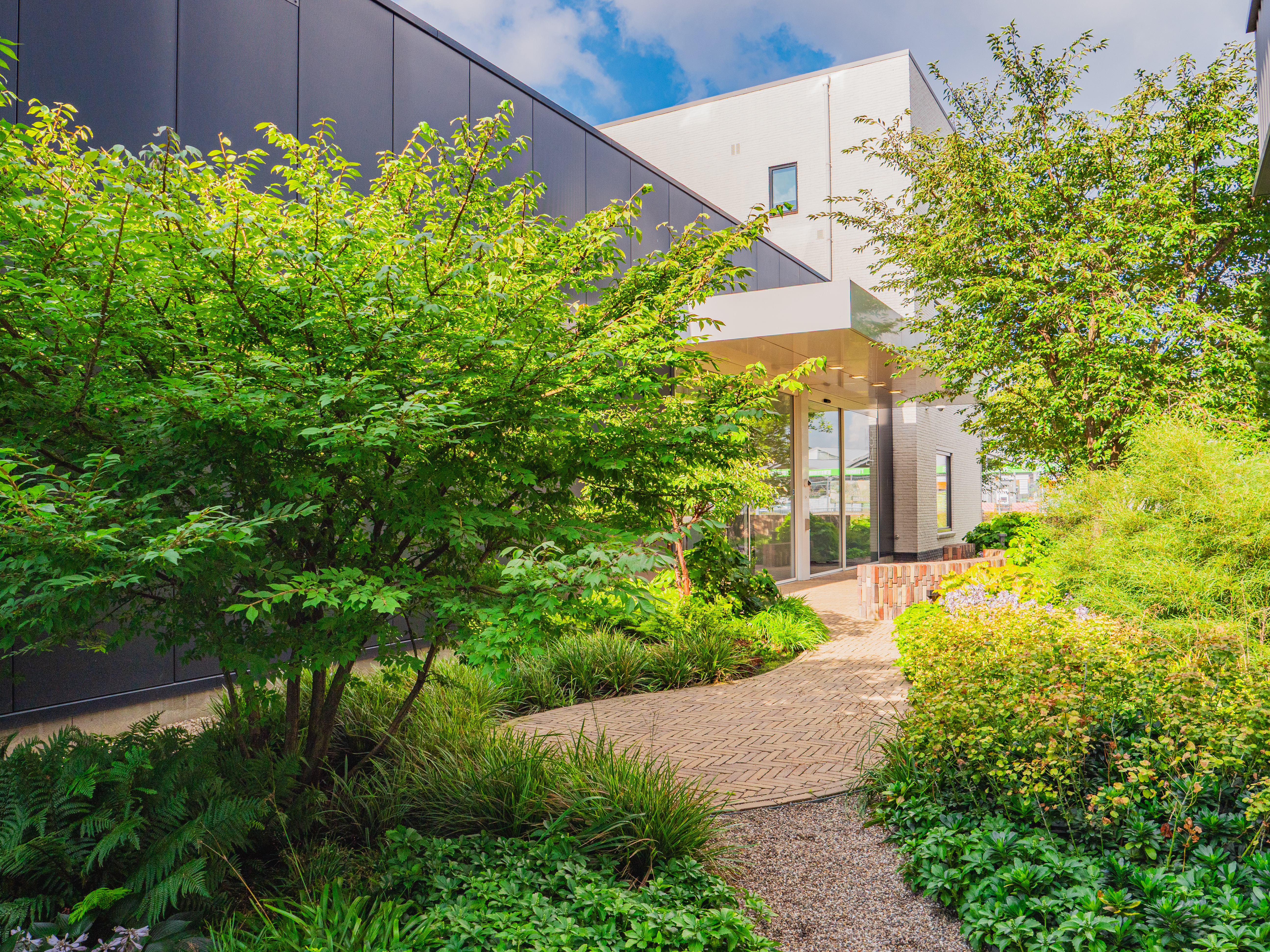 The site called for planting that fits a contemporary office environment: enough greenery for shade and cooling in summer, but without creating a heavy maintenance burden for the site team. Our advisers proposed a planting palette with a mix of avenue trees and specimen trees that match the growing conditions on site.