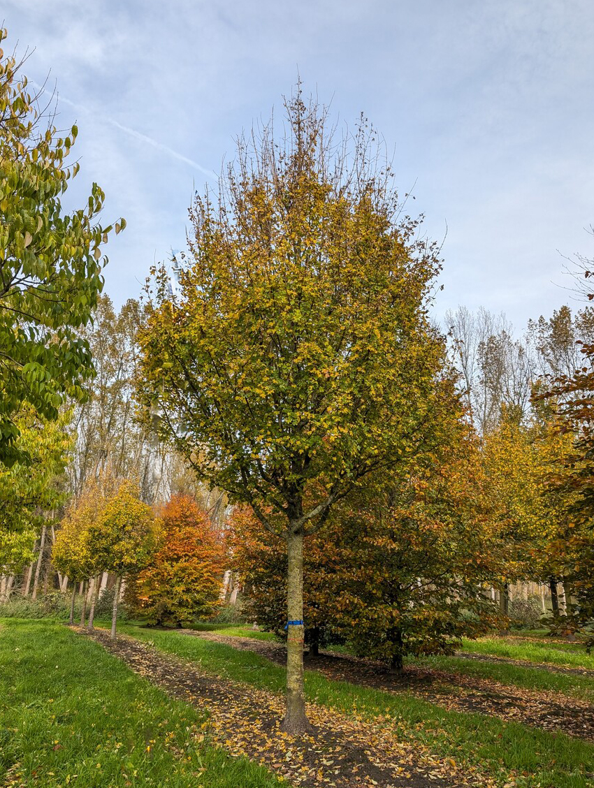 The cultivar 'Elsrijk' strongly resembles the species morphologically. As a rule the tree is slightly less tall and the leaves are a little smaller. The most striking feature is the very dense and closed crown. Therefore 'Elsrijk' is very suitable for narrow streets. The fact that the plant can withstand hard surfaces contributes positively. The plant forms a strongly branching root ball with very many hair roots. 'Elsrijk' is hardly sensitive to mildew, also a characteristic that has contributed to the fact that this tree became part of the standard assortment of avenue trees in a relatively short time. In 1953 'Elsrijk' was selected from a population of 12-year-old trees. Even then the plant caught the attention because of its narrow crown.