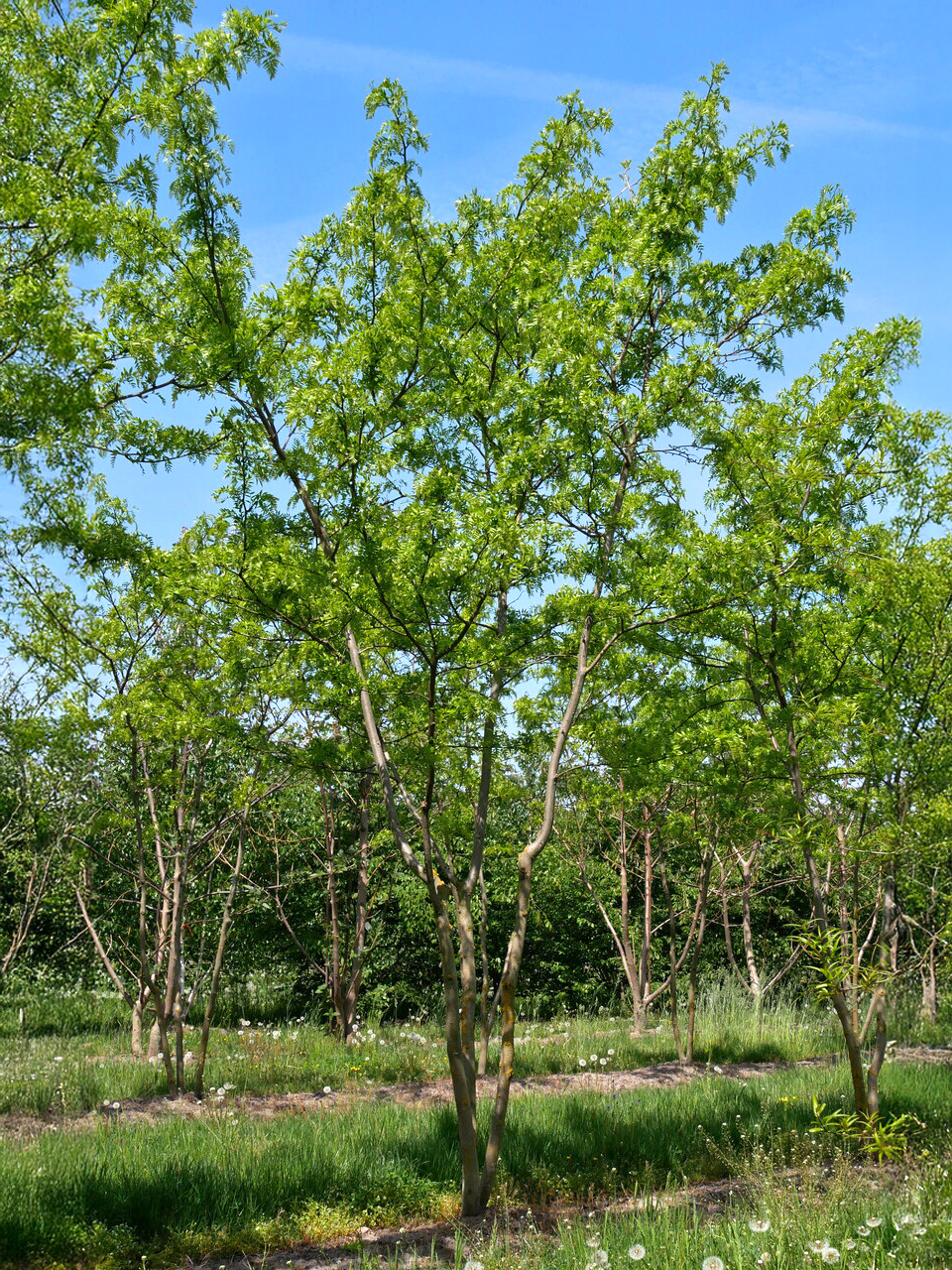 Clear stem tree Multi-stem tree calcareous soil loamy soil sandy soil tolerates paving resistant to de-icing salt resistant to frost (WH 1 - 6) suitable for dry soil broad conical half-open crown green green late sprout average growing Feathered leaf valuable for bees (honey plant) non-toxic (usually) Fruitless cultivar