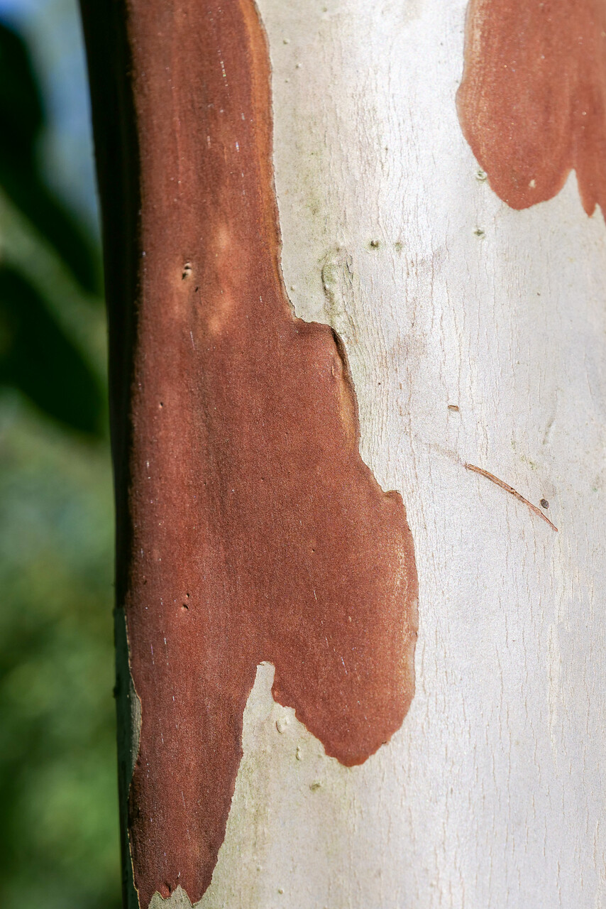 Originating from a cross between Lagerstroemia indica and L. fauriei, 'Natchez' is one of the better hybrids in this genus. Forms a tree 6-9 m tall with a round crown. The cinnamon-brown bark, which flakes off lighter grey-brown, is an important added feature. The summer's glossy dark green leaves turn orange to red in autumn, depending on local conditions and temperature. In the second half of summer, the white flowers open, arranged in up to 30 cm long, dense panicles. The petals are typically fringed, giving the flowers a "fluffy" appearance. The yellow stamens add a subtle touch of colour.