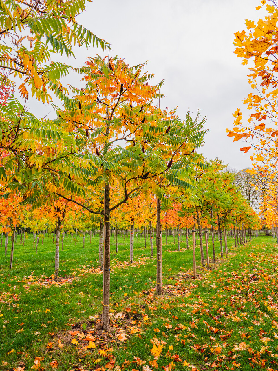 The right time to plant Rhus typhina is during the dormancy period. In Western Europe, Rhus typhina with root balls can generally be planted from mid-November to late April, although this depends strongly on the climatic conditions and the species of tree.