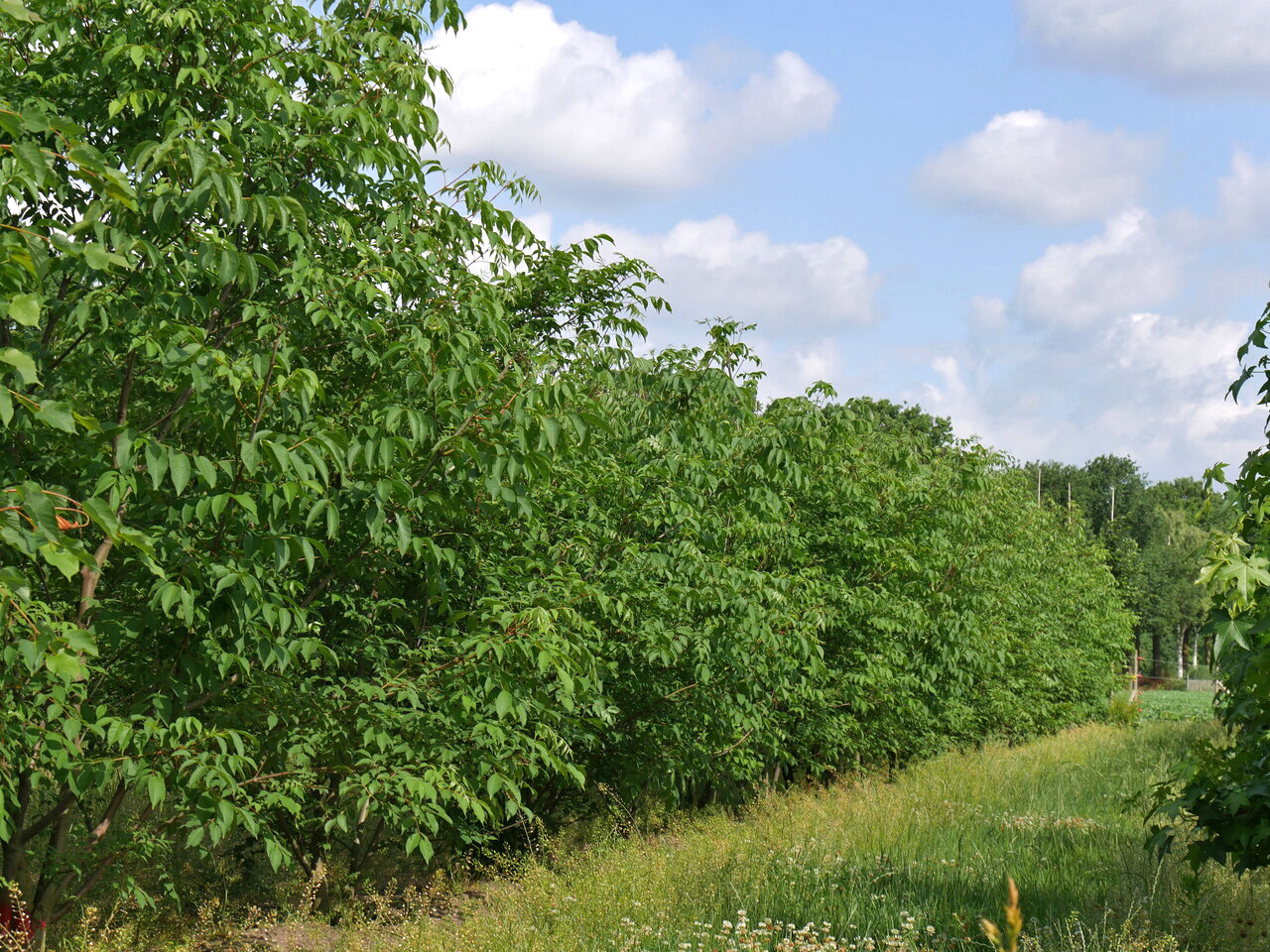 Clear stem tree Multi-stem tree calcareous soil clay soil loamy soil tolerates no paving broad vase-shaped 1st size , taller than 12 metres half-open crown green white June late sprout fast growing Conspicuous bloom Feathered leaf valuable for bees (honey plant) valuable for butterflies non-toxic (usually) Capricious growing Ornamental fruit Fragrant flowers playground tree