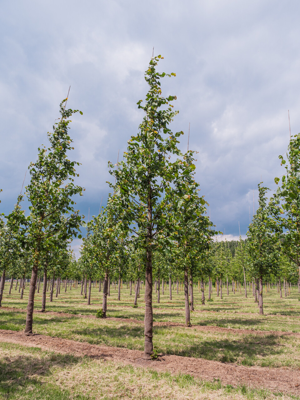 A good selection from T. europaea with a straight, vertical stem and upwards-slanting branches. Has a vigorous manner of growth, developing a crown that first has a tapered top but that later becomes more flattened. The bark remains thin for a long time, and later develops deep grooves. There are few to no root suckers growing around the trunk. At first, the twigs are yellowish brown but they soon turn brownish red. This is a key way to recognise this tree. The leaf buds are also brownish red. The leaves are light green with a yellowish green underside and have a broad, slightly heart-shaped base and a red leaf stem. 'Pallida' leafs out in the spring earlier than the species and is susceptible for aphid infestation with honey dew and sooty mould as a result. Its leaves drop earlier in autumn. This makes it suitable for planting only in parks and avenues with broad verges. Sensitive to leaf spot disease.