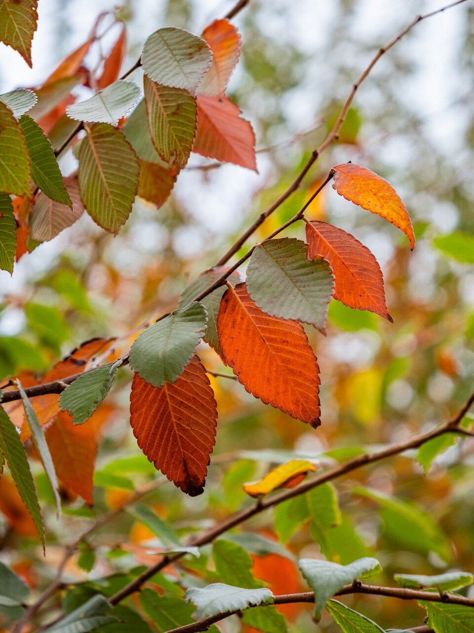 The leaves of Zelkova schneideriana turn red in autumn.
